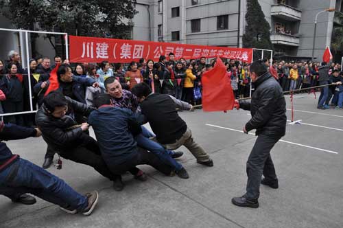 2015年1月,川建(集團(tuán))開展“迎春拔河比賽”活動,活動主旨為豐富員工的文化生活,增強員工的體育鍛煉意識,提高團(tuán)隊合作精神,進(jìn)一步增強企業(yè)凝聚力。